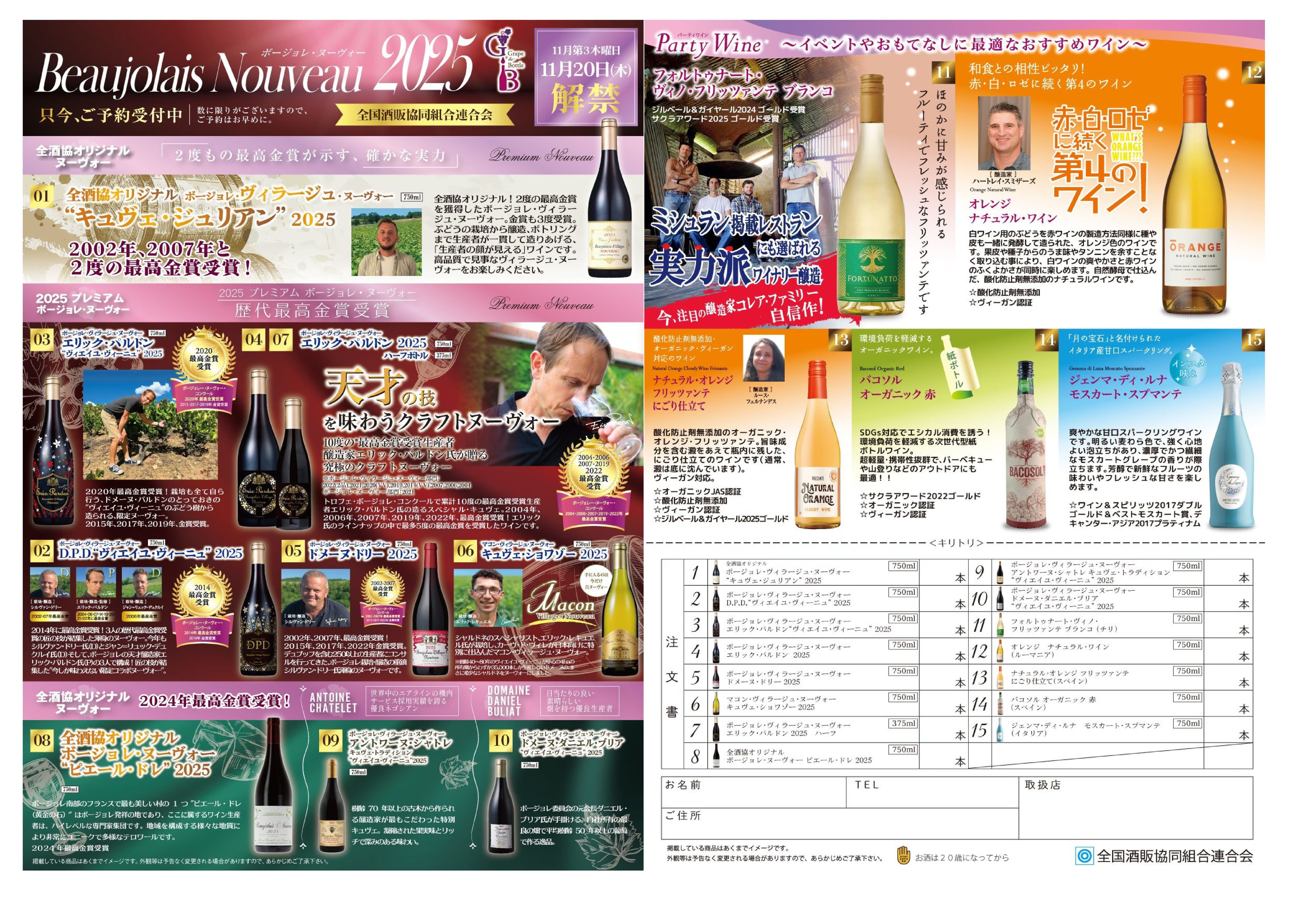 全酒協オリジナルボージョレ・ヌーヴォー2025予約開始
