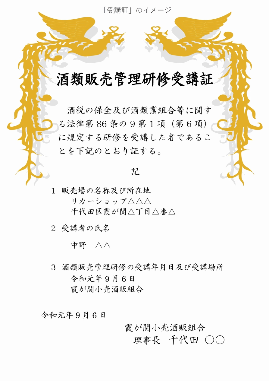 各小売酒販組合から「受講票」を送付、受講確定