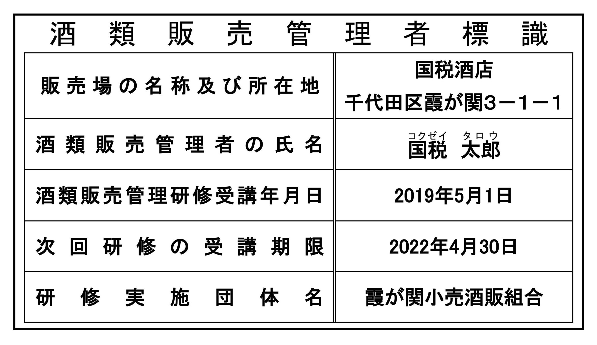 酒類を販売する店舗には、受講証の内容に基づき、「酒類販売管理者標識」を作成・掲示することが義務づけられています。