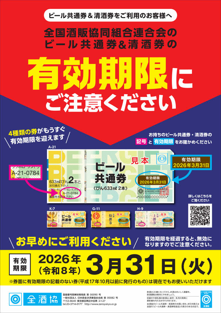 「ビール共通券・清酒券」のお買い求めは、お近くのお酒屋さんで